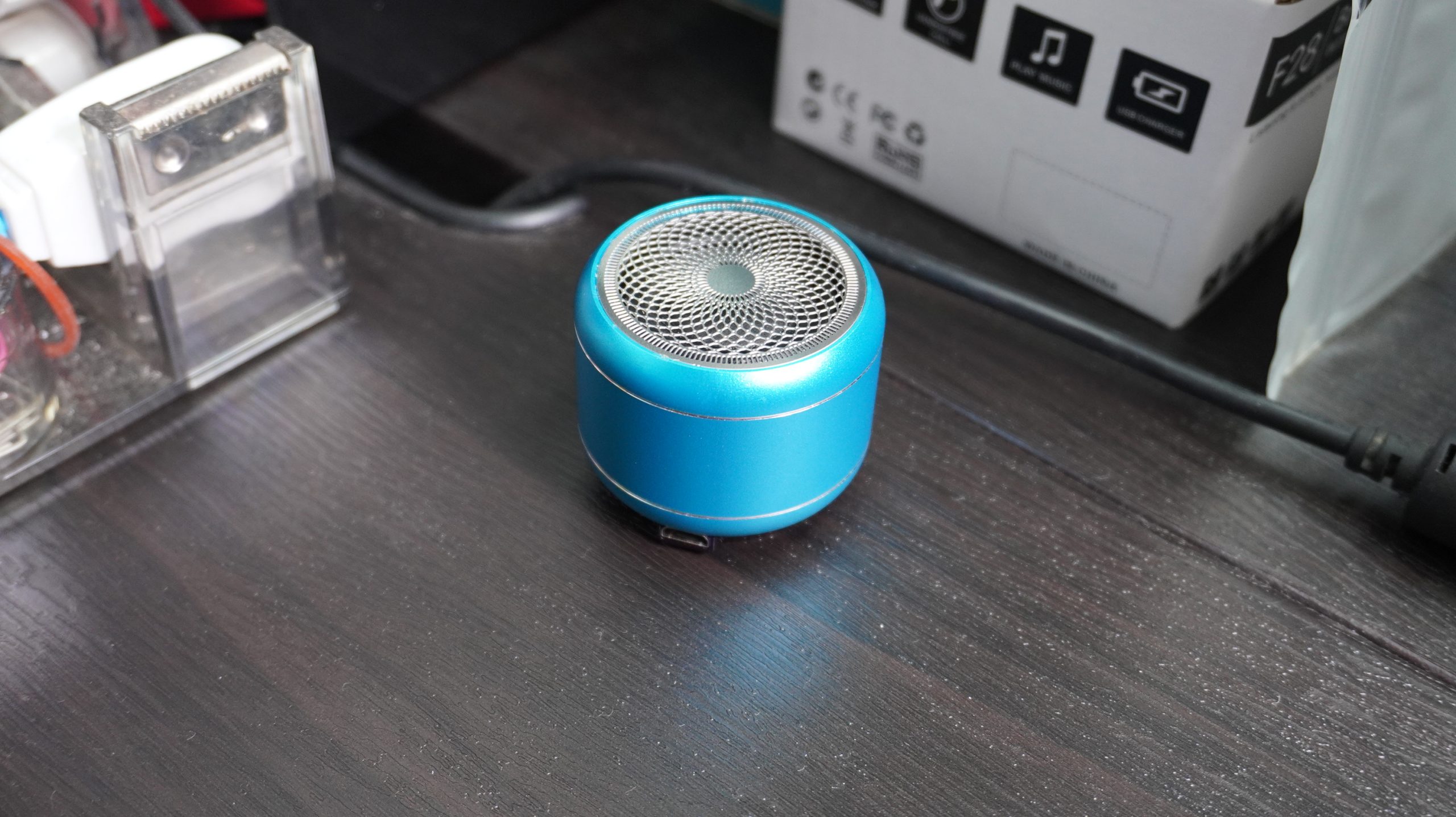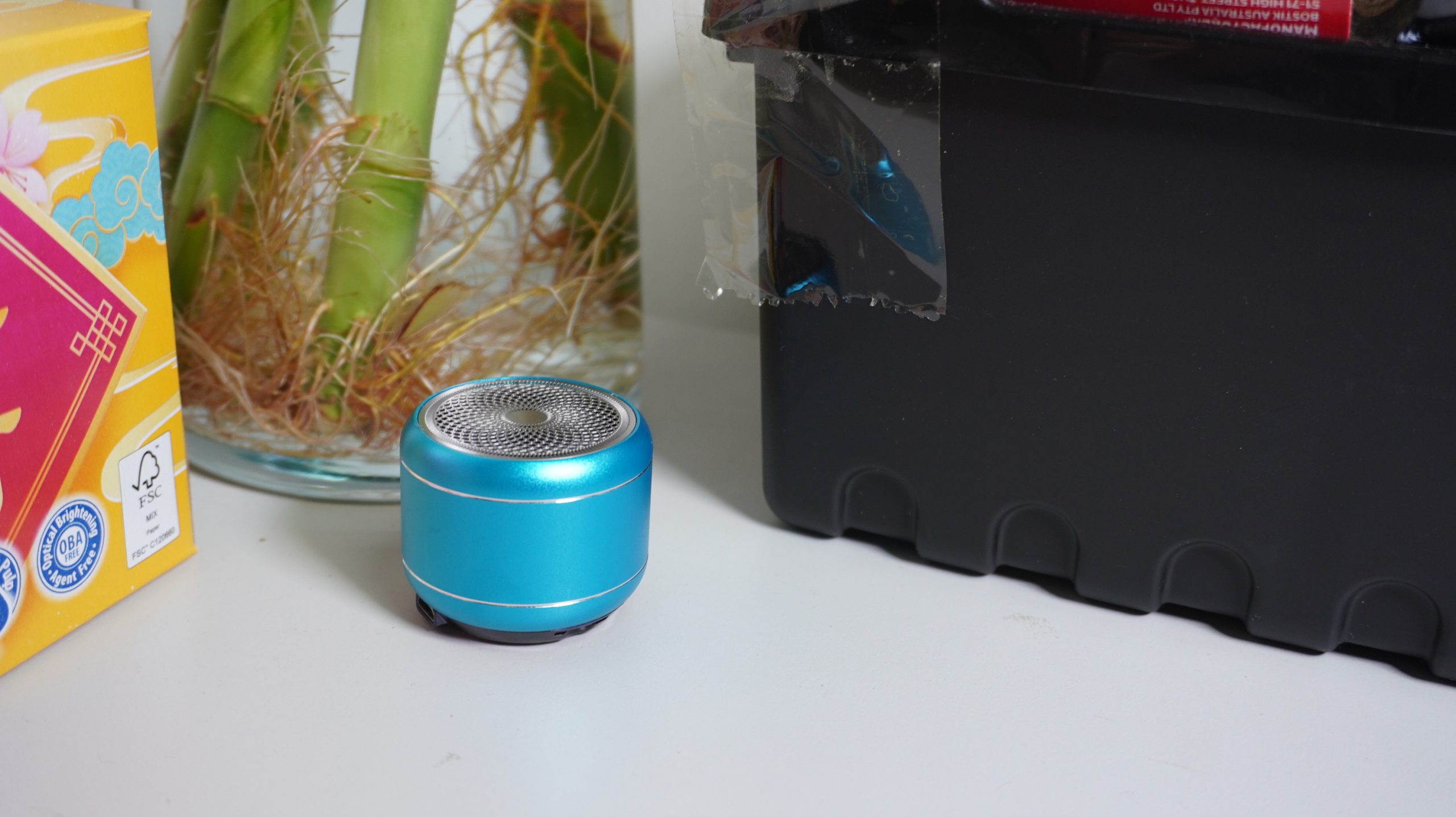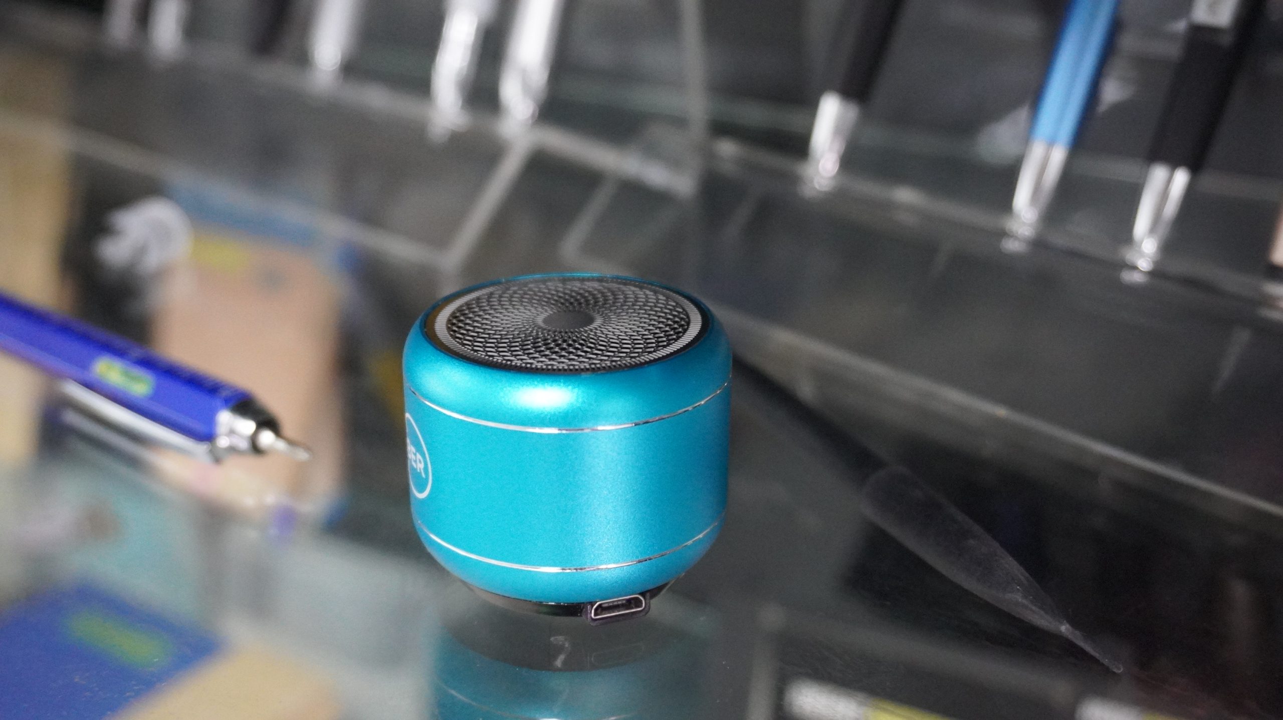 • This speaker is as big as size of the palm, with its built-in noise reduction microphone and clear sound quality. This speaker can be paired with another to give a wide range of surround sound.