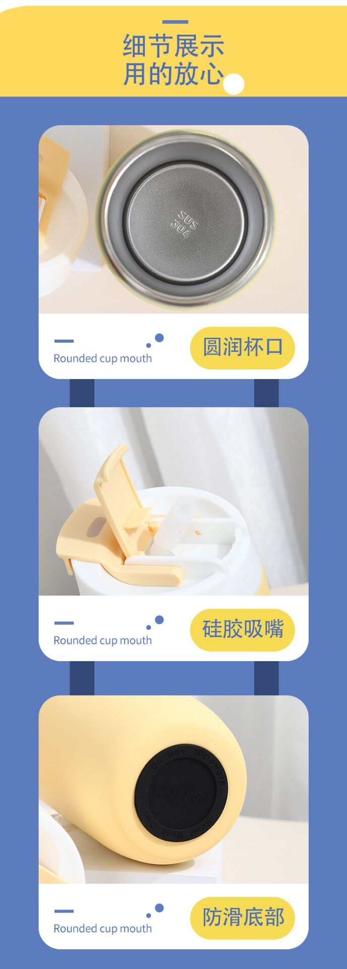 • There are 2 ways for you to drink from with this cup, either with the straw or through the mouth opening.
