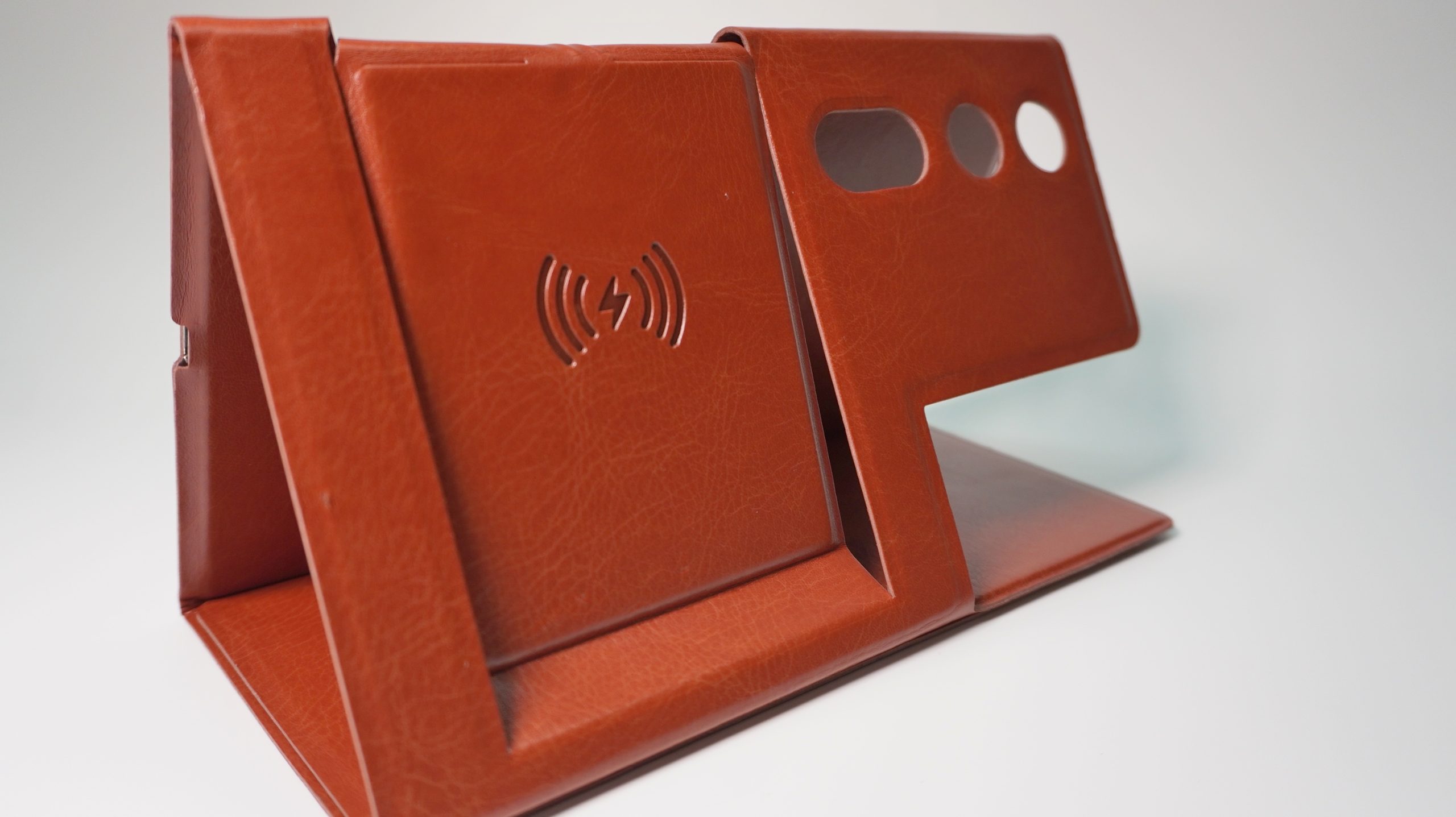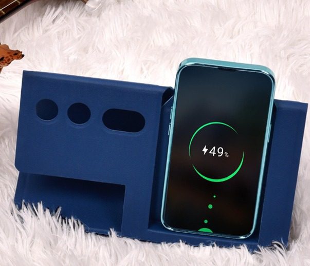 Foldable and portable, easy to carry around to meetings, clients, travelling, you won’t have to worry about tidying your stationery or worrying about not having a powerbank anymore as this wireless stationery holder is here with you!