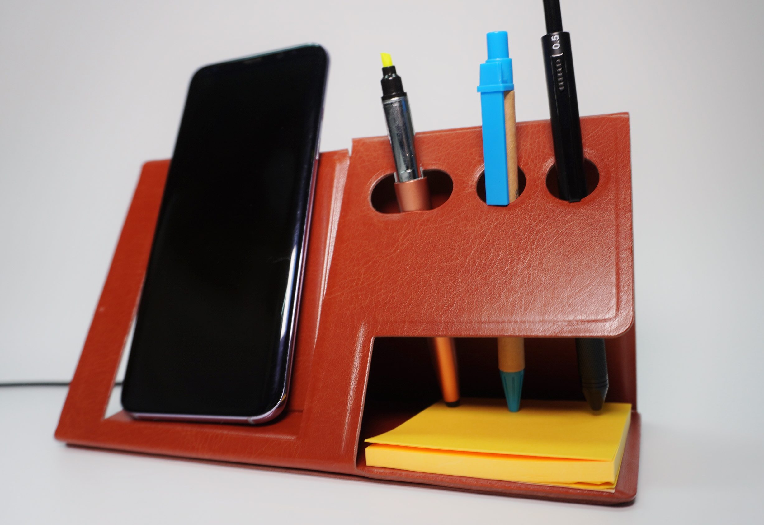This Wireless Stationery Holder is a perfect premium gift for your colleagues, friends, students, family and clients! Tidy up your stationery and keep your phone charged on your desk, you can even use this like a phone stand and store other tiny items such as paper clips and correction tape under!