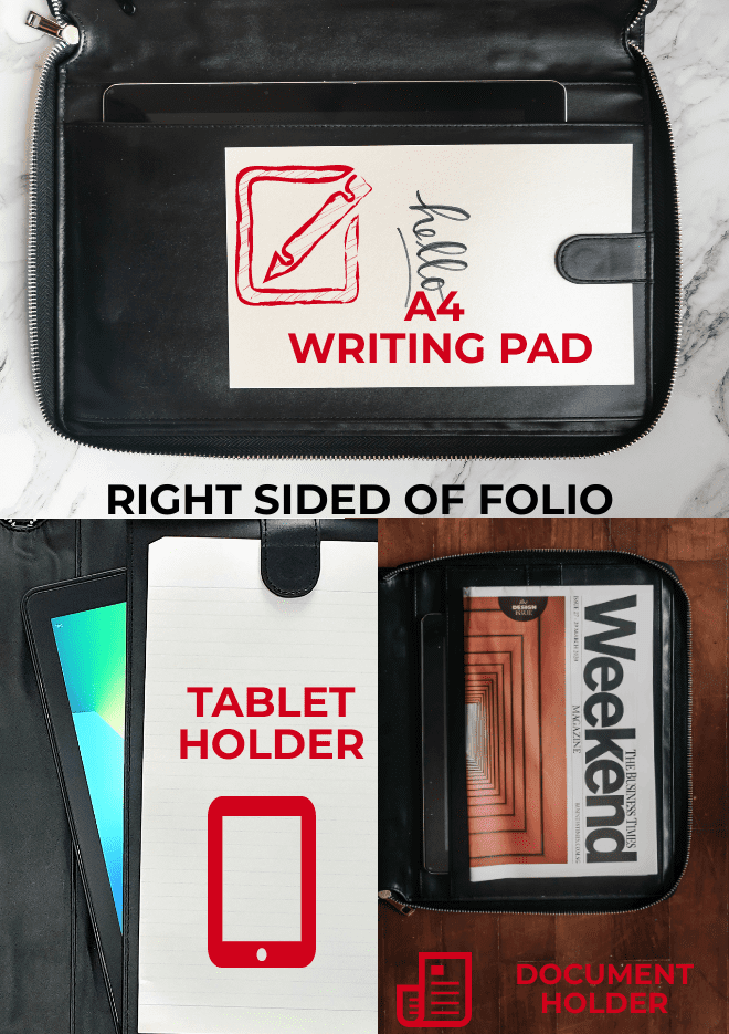 Right Side:Tablet IPAD / A4 Paper / Brochure / A5 Notebook Keeper