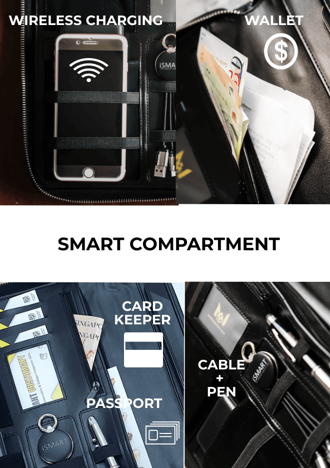 Left Side: Phone Holder / Wallet / Pen / Passport / Cable / Card Holder