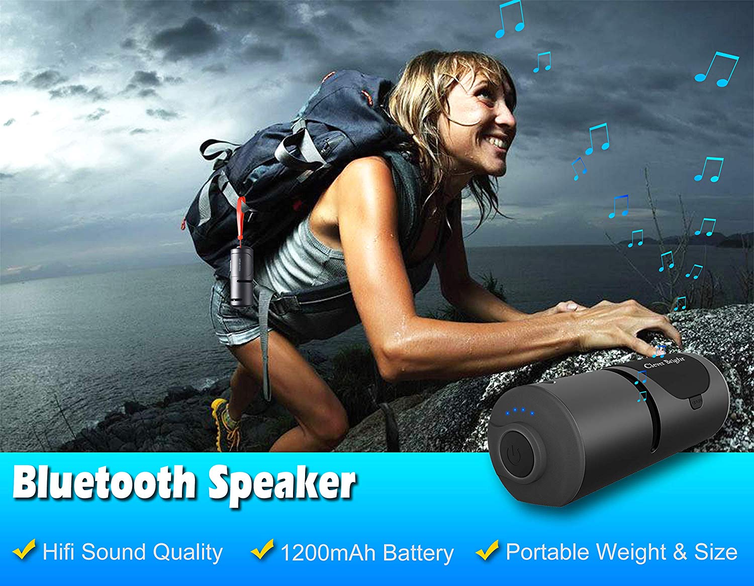 - 3 in 1 high-quality Bluetooth earbuds system, which creatively build-in Bluetooth speaker and 1200Mahpowerbank